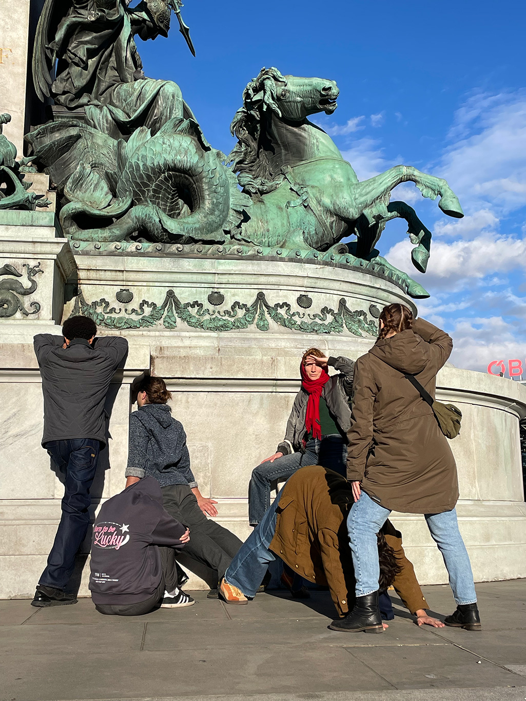 This three-day-long course led by Otto Krause & Milan Loviška with the students of the Scenography department and the Academy of Fine Arts in Vienna explored both staring and not-doing as performative, spatial, and ritual practices. Through somatic scores, and site-responsive scenographic experiments, we investigated how stillness, presence, and refusal can become powerful design strategies in scenography and performance.